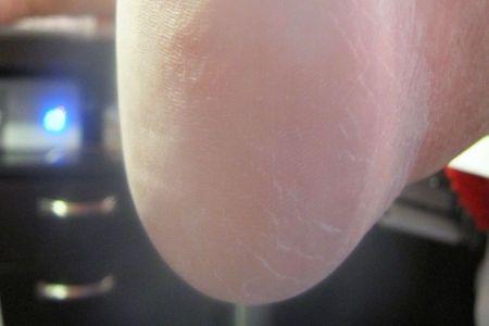 Pacjent z bardzo dużymi zrogowaceniami na piętach. Dodatkowo, z powodu nadmiernego przesuszenia naskórka, zaczęło dochodzić do pęknięć. Nadmierne rogowacenie zostało usunięte, ponad to powierzchnia naskórka została wypolerowana mechanicznie przy pomocy frezarki.